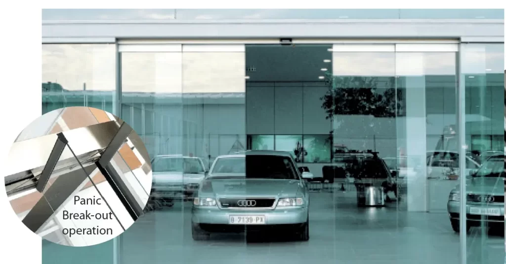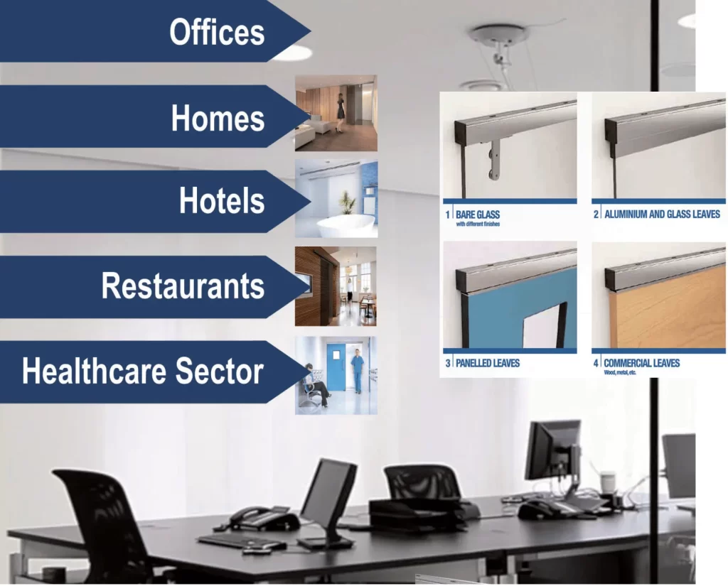 - Ideal for entrances with space limitations, for corridor separations, or where the opening needs to be wider than usual, for example at car showrooms.Â