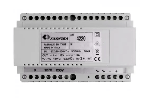 Stabilised power supply for digital FN4000 system. Input voltage 230/127 Vac, 60 VA, 12 Vdc and 13Vac voltage. Outputs are protected against overloading and short circuits.